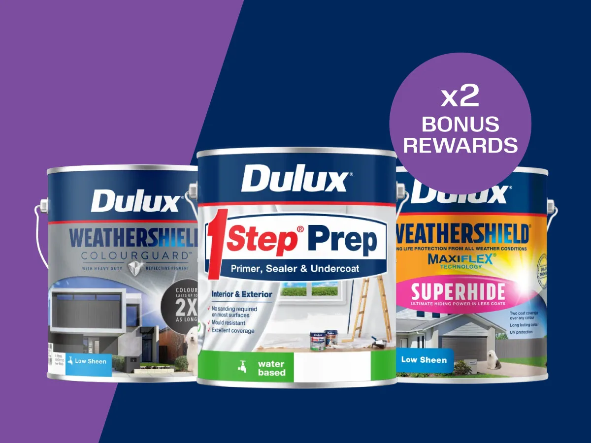 DuluxTRADE Rewards Members can earn bonus points on the Dulux Weathershield +PLUS range & Dulux 1Step Prep—this month only!