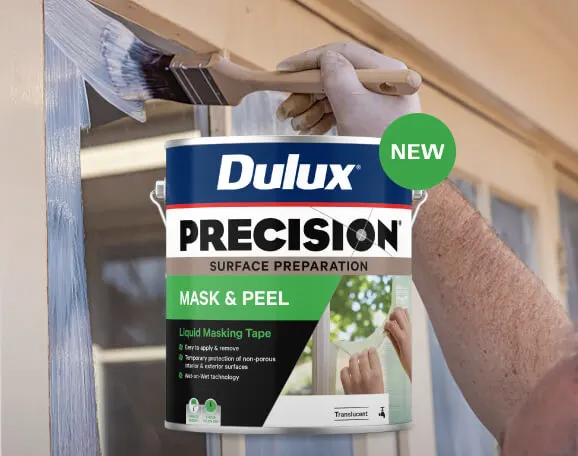 NEW Dulux PRECISION® Mask & Peel is a low-VOC, water-based, peelable liquid masking tape that provides temporary protection of non-porous interior and exterior surfaces. Suitable for masking multi-pane timber windows and doors, glass, stainless steel, laminates, powder-coated surfaces and tiles. Dulux PRECISION® Mask & Peel features Wet-on-Wet technology allowing for a quick recoat time. It also acts as a sealer for bare timber substrates, saving time and labour when masking or cutting by hand and peels away cleanly when you're done painting.