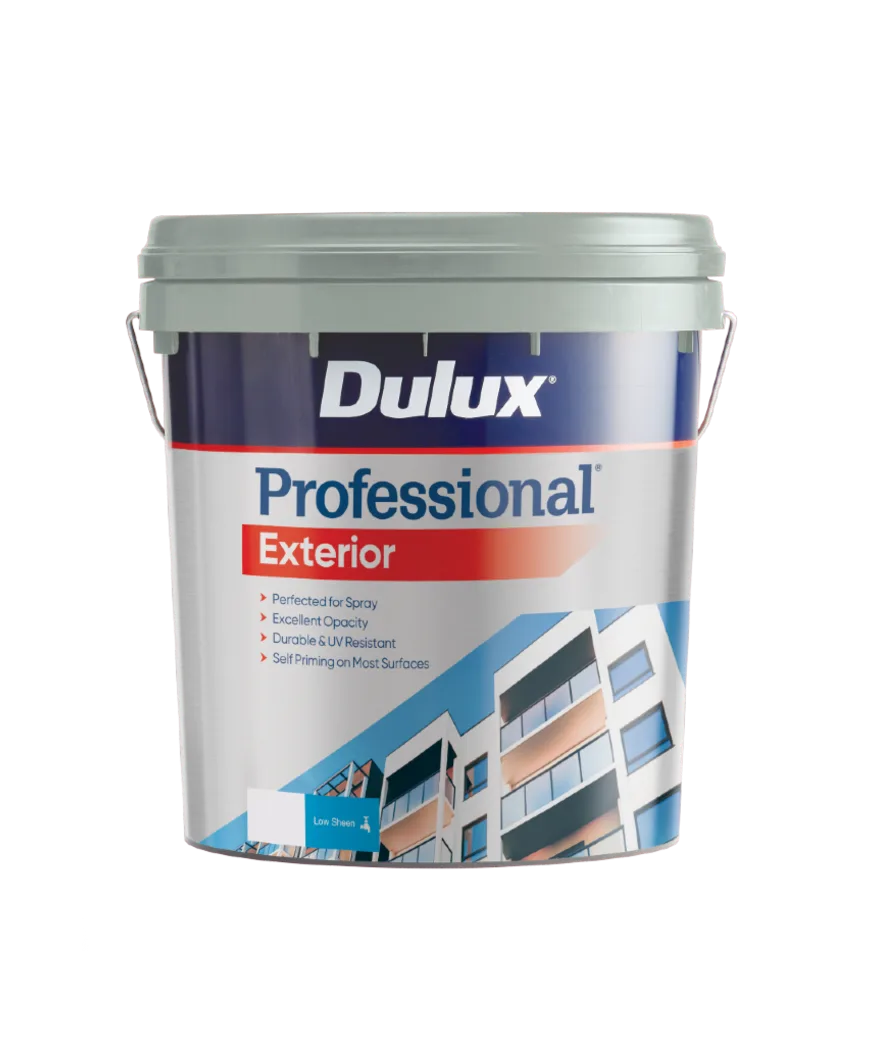 Professional® Exterior is a premium, tintable, waterbased exterior paint that has been perfected for spray application, to deliver productivity and efficiency gains. It has mould and flash-rust resistance, is self-priming on most surfaces and has excellent opacity. Its low overspray formula delivers an ideal film build and even finish at low pressure. It has excellent application properties, making it ideal for brushing and rolling. All Dulux Professional products are designed to meet the needs of professional painters.
