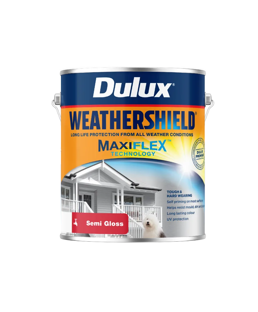 Dulux Weathershield® has been specially designed to provide a tough, hard-wearing finish that provides protection from all weather conditions. Formulated with MaxiFlex® Technology to expand and contract with the surface, Dulux guarantees Weathershield® won't peel, flake or blister for as long as you live in your home.