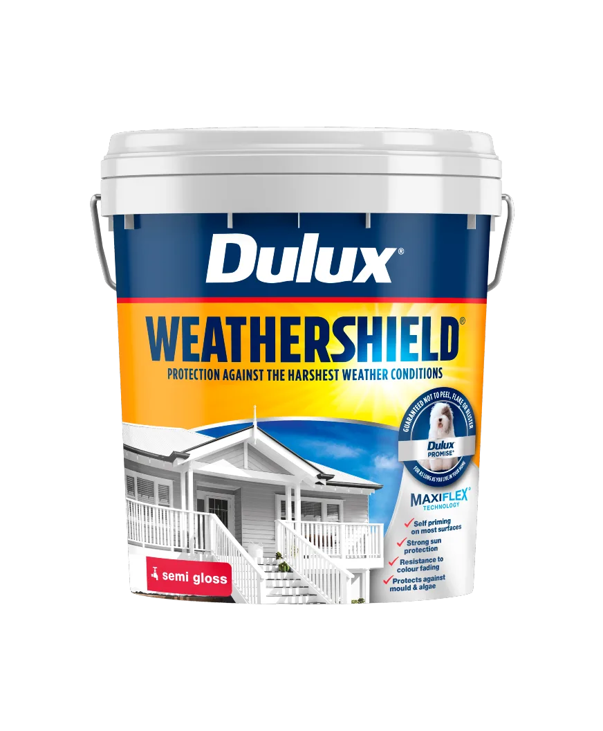 Dulux Weathershield® has been specially designed to provide a tough, hard-wearing finish that provides protection from all weather conditions. Formulated with MaxiFlex™ Technology to expand and contract with the surface, Dulux guarantees Weathershield® won't peel, flake or blister for as long as you live in your home*.