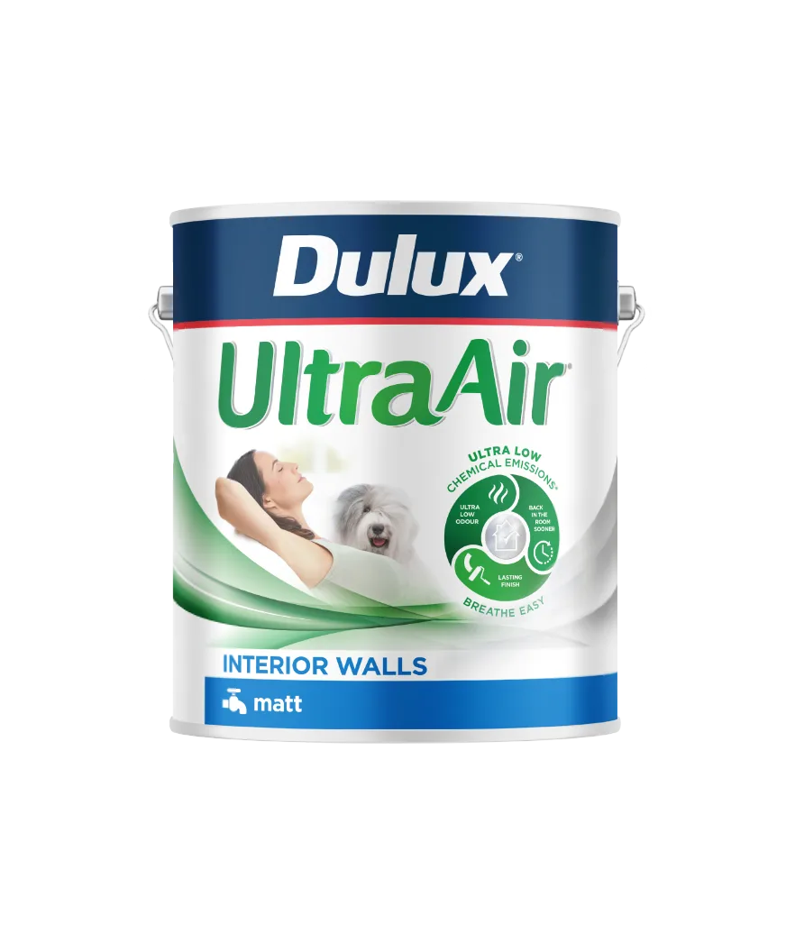 Dulux UltraAir® Interior Walls Matt is an ultra-low chemical emissions*, ultra-low odour premium water-based paint. Proven to emit fewer chemical emissions*, Dulux UltraAir® maintains your indoor air quality. It is a whole-of-home product that is recommended for use in conjunction with Dulux UltraAir® Interior Primer and Dulux UltraAir® Ceiling White to achieve an ultra-low chemical emissions system. Dulux UltraAir® is GREENGUARD Gold certified and Global GreenTag™ GreenRate™ Level A and PlatinumHEALTH™ certified. Dulux UltraAir® can contribute to the achievement of Green Star and WELL project certifications. So take a deep breath, relax and enjoy your great indoors.