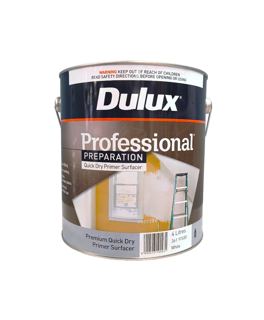 Dulux Professional Quick Dry Primer Surfacer is a premium alkyd based, non-inhibitive, primer surfacer with grain filling and sanding qualities. Itcan be used on interior or exterior surfaces as a primer surfacer for new or refurbishment work. All Dulux Professional products are designed tomeet the application needs of painters.