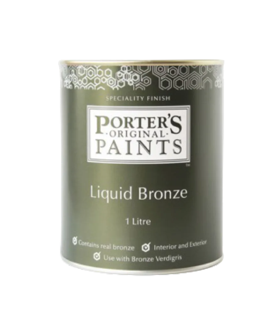 Porter’s Liquid Bronze and Bronze Verdigris will continue to oxidise after initial application. On exterior surfaces, be mindful that oxidisation stains (caused by run-off) may appear on adjacent surfaces.