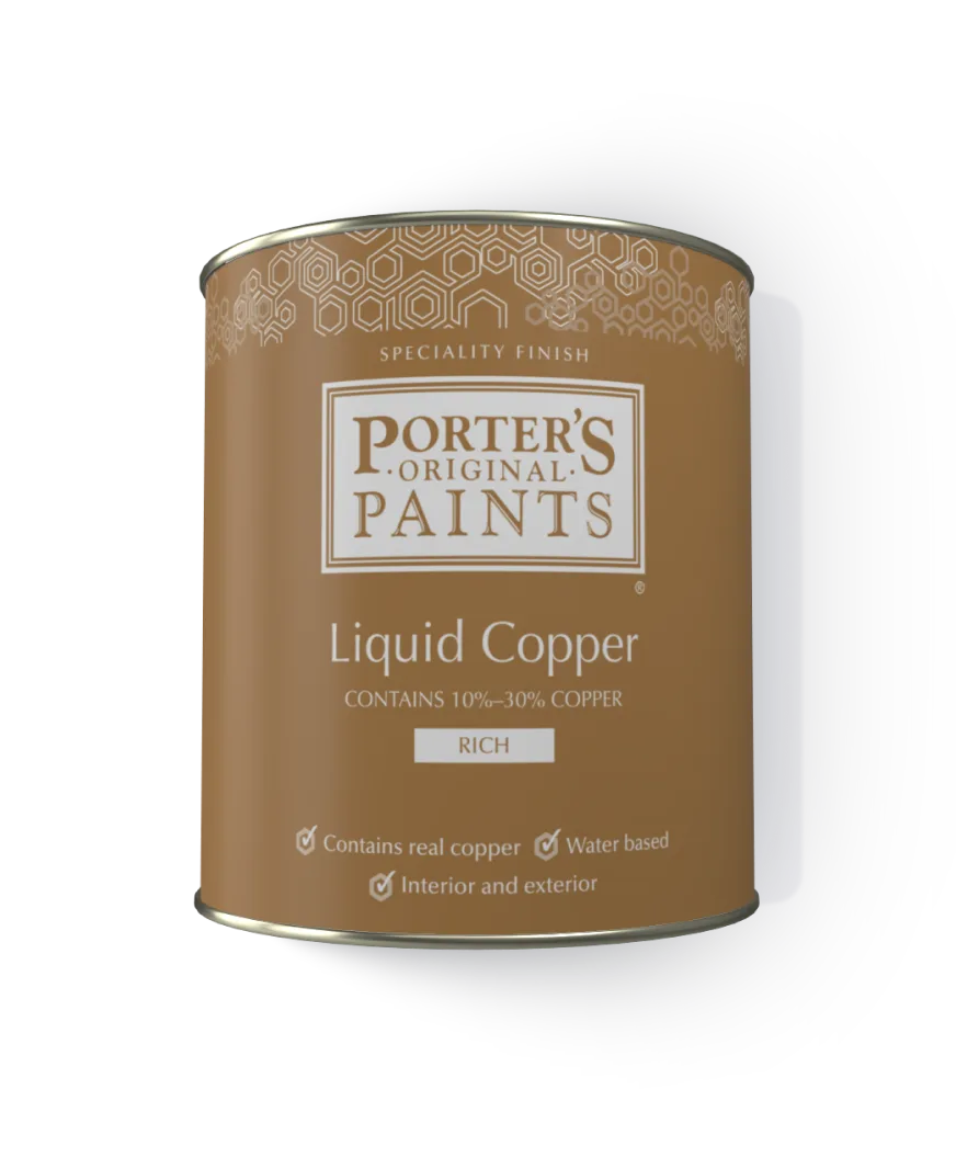 Porter’s Liquid Copper can be used on its own, without the application of Patina Green. Please note that the copper particles will react to moisture and finger marks. On exterior applications a subtle green patina will develop naturally over time. On interior applications, continued touching of the copper surface can leave dark fingerprints.