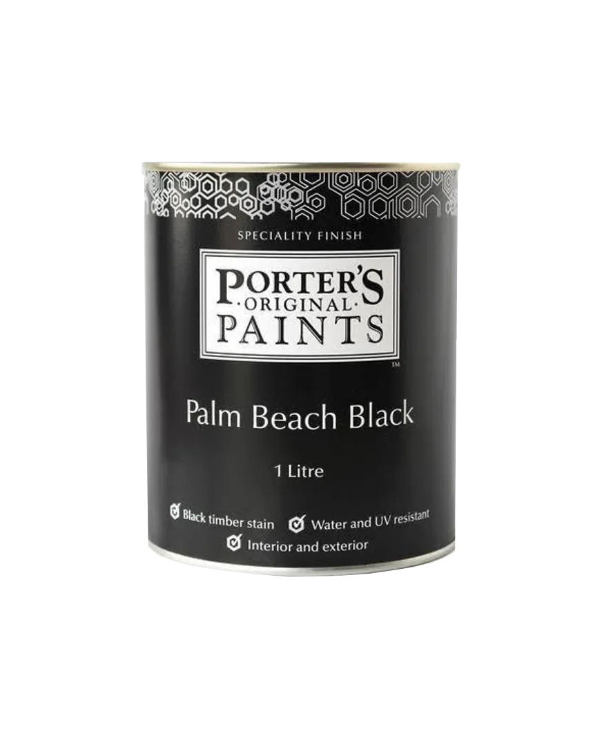 Porter’s Palm Beach Black is a water-based, colourfast black stain suitable for most timber types. Palm Beach Black will produce a transparent effect to enhance the grain of timber.
