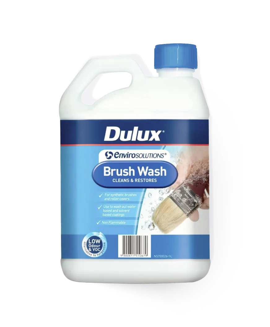 Dulux ENVIROSOLUTIONS® Brush Wash is an advanced formulation that delivers a convenient and fast way to clean and restore synthetic brushes and synthetic roller covers.