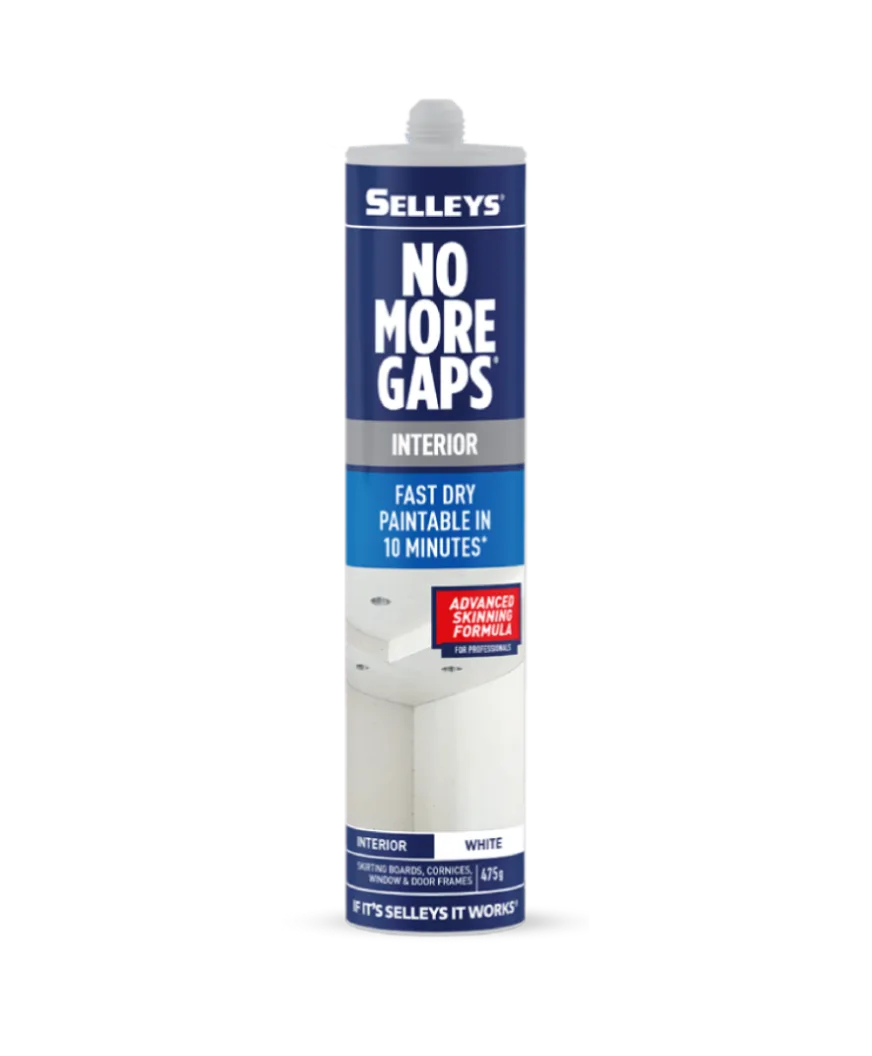 Selleys No More Gaps Exterior is a durable, flexible acrylic gap sealant specially formulated with titanium compound, fungicide and algaecide for superior weather resistance, extra protection against harmful UV rays and superior durability, in exterior situations. Super flexible to cope with movement caused by weather and temperature extremes. Paintable and water clean up.